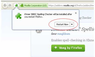 សហគមន៍កែបសូមបង្ហាញវិធីសាស្ត្រប្រើកម្មវិធីនេះដោយយើង ទាញយកកម្មវិធី Khmer SBBIC Spelling Checker 1.2 រួចហើយចេញផ្ទាំងមួយសម្រាប់ឱ្យយើងចុច Voeg by Firefox ដើម្បីទាញយកសូមមើលរូប